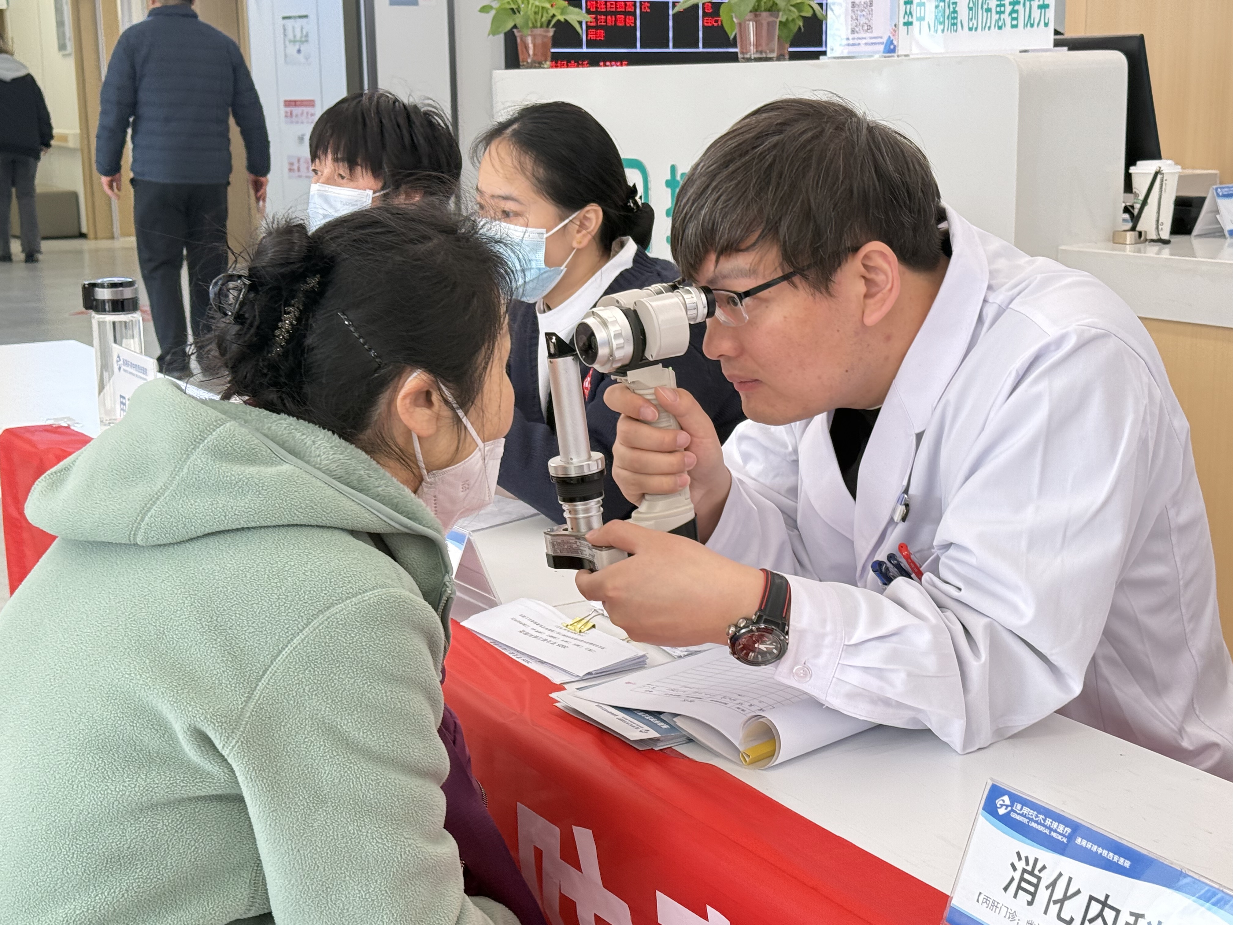 青光眼是不可逆致盲的“隐形杀手”,但早期发现、科学干预可有效保护视力。上午9时许,在门诊一楼大厅义诊活动现场,眼科邓雷医师为前来问诊的患者和家属筛查青光眼、白内障、干眼症等眼科常见疾病,讲解了眼健康知识,并发放了眼科免费检查卡和干眼治疗体验卡。