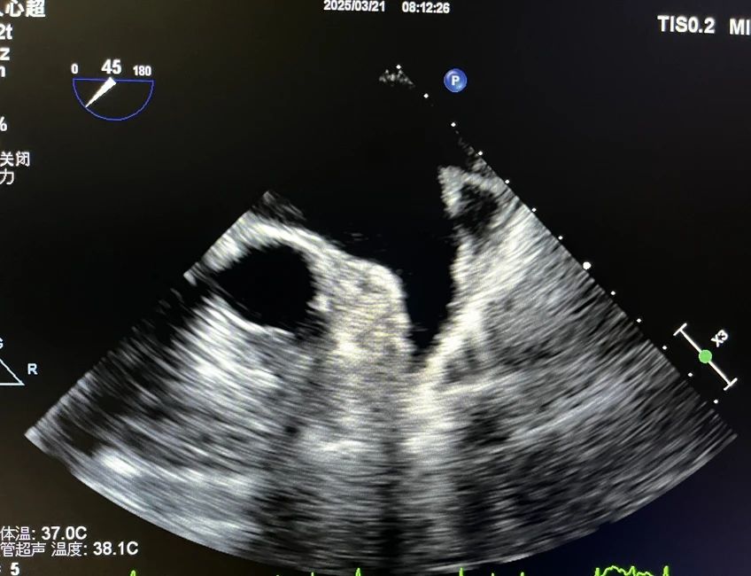 房颤,即心房颤动,是一种常见的心律失常,指心房失去规律的舒张和收缩,代之以无序的颤动,房颤有发生心功能减退、心源性栓塞等风险,且发生的脑栓塞通常致残率非常高。经导管射频消融术是持续性房颤的有效治疗手段,目前成功率较高。传统经胸超声心动图(TTE)受限于声窗条件,难以清晰显示左心房及肺静脉结构,而经食道超声心动图(TEE)通过将探头置入食管,可近距离、高分辨率观察心脏细微结构,精准评估左心房血栓、肺静脉解剖变异等关键信息,从而提升手术安全性及成功率。