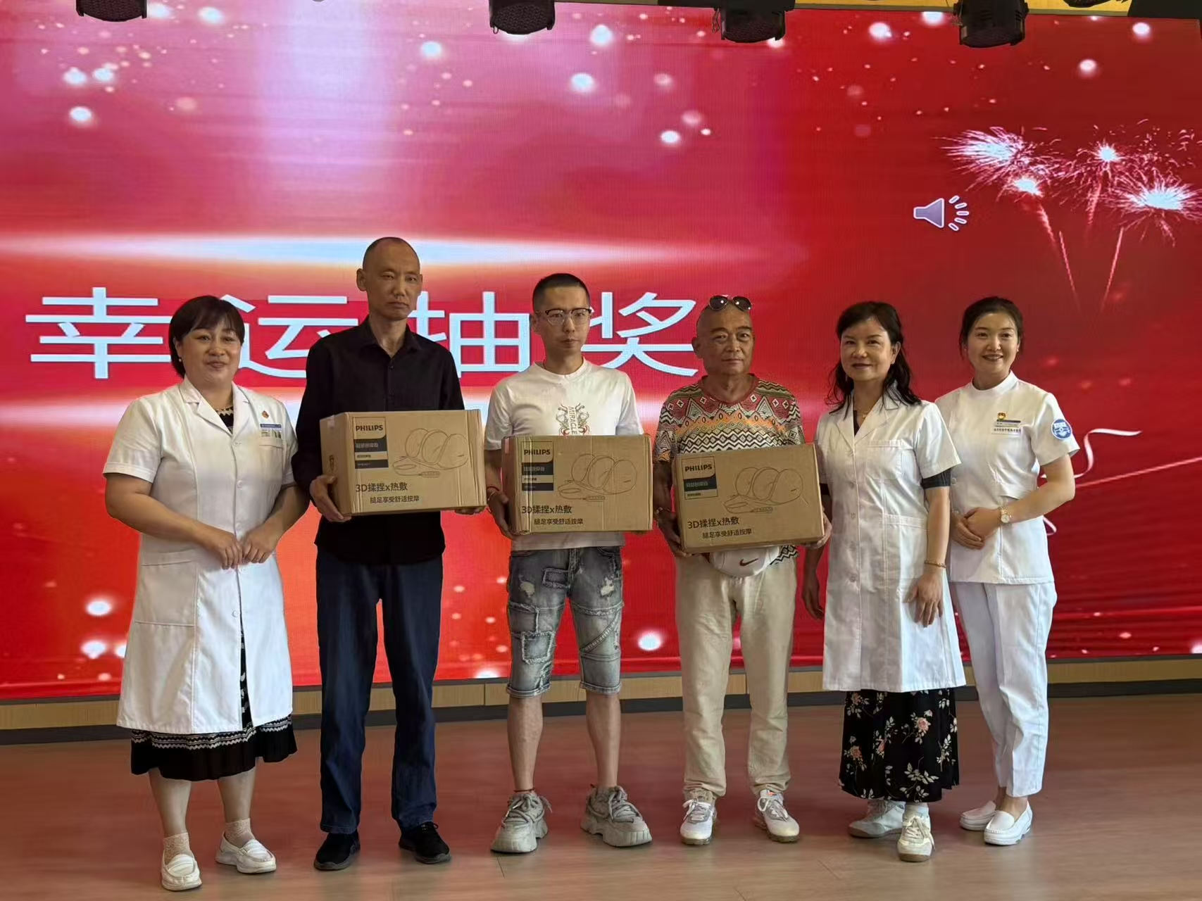 在有奖问答环节,肾友们积极抢答,气氛热烈。医护人员为每位患者发放了精美礼品,副院长栾育欣、血液净化室主任杨奕和护理部主任秦燕还抽取了一二三等奖,同时评选出“最佳个人管理奖”。除了丰富的知识分享,现场还精心设计了击鼓传花、抓鸭子、你来比划我来猜等趣味游戏,大家踊跃参与,在欢笑声中表达对生活的无限热爱!