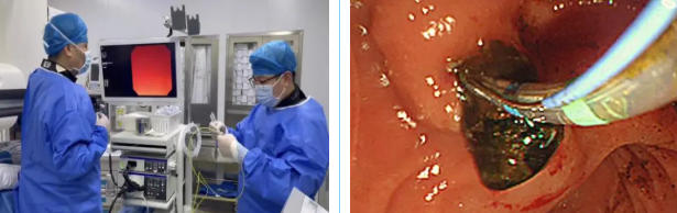 消化内科主任张排旗牵头多学科会诊,会同综合外科主任李前进充分评估后,决定实施“双镜联合”,先行ERCP胆总管取石,再行腹腔镜胆囊切除术。