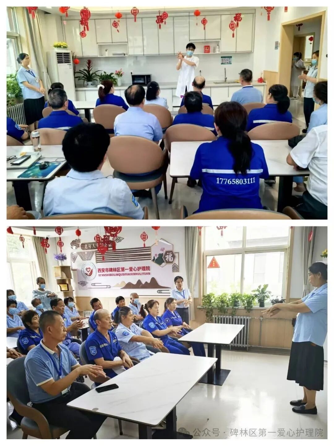 为进一步提升护工队伍的专业素养与应急处置能力,保障老人及患者的照护与就医安全,7月24日下午,通用环球中铁西安医院就医体验服务部主任兼西安市碑林区第一爱心护理院负责人李丽萍,组织全体护工开展了一场涵盖手卫生、海姆立克急救法、鼻饲技术及消防安全知识的专项技能培训。本次培训旨在通过系统讲解与实操演练,强化护工的规范服务意识与应急处理能力。