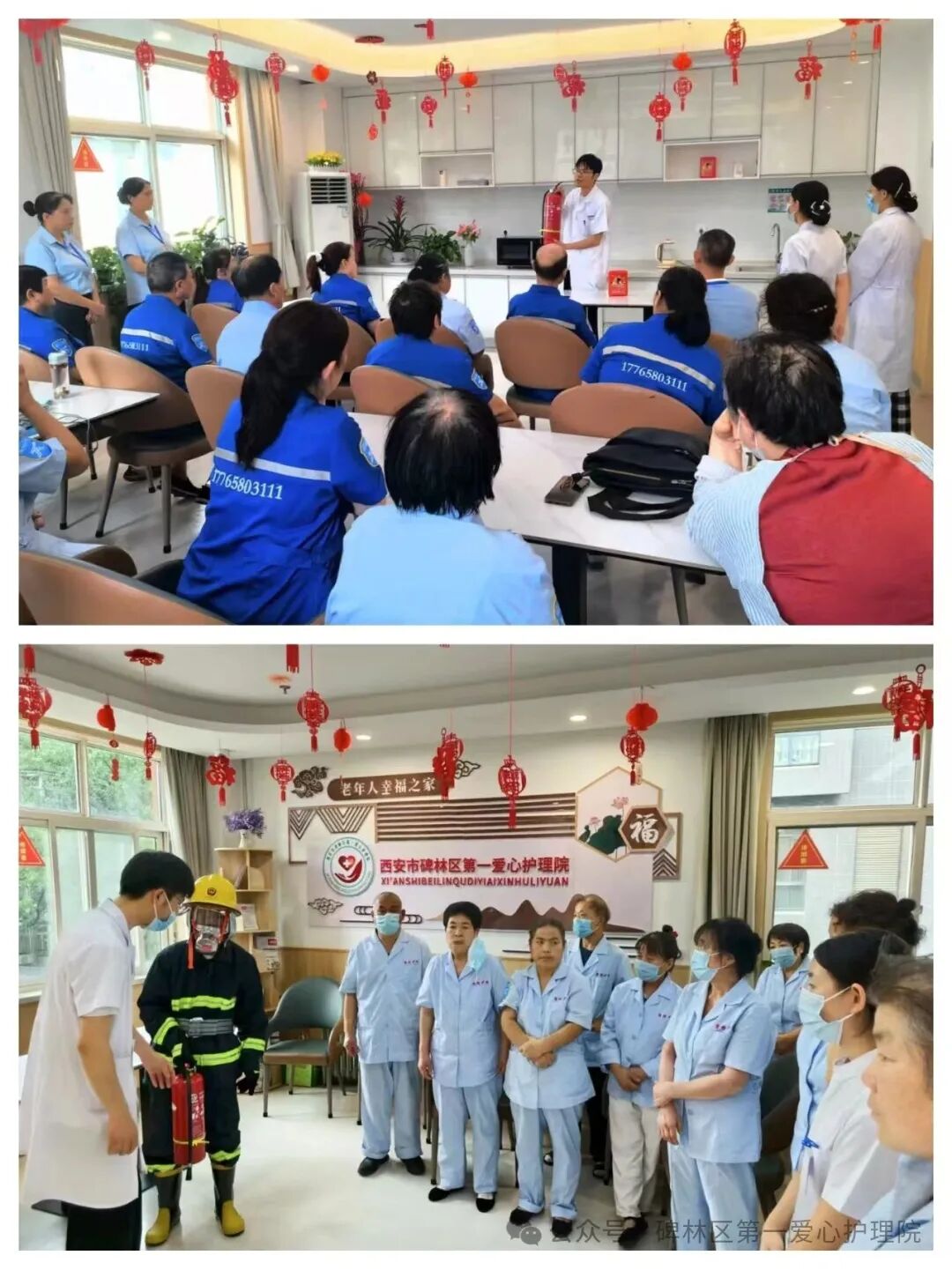 此外,消防安全知识培训通过火灾案例警示、灭火器使用方法演示、消防卷盘使用方法、室内消火栓连接与消防水带使用等,增强护工的消防安全意识与应急处置能力,为院区安全筑牢防线。