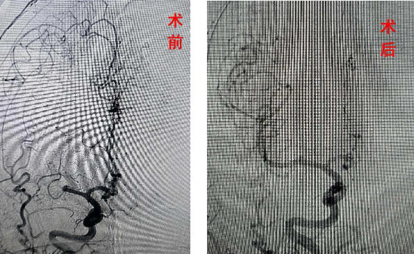 基于患者的临床表现和体检结果,考虑为脑血管意外。在120急救、急诊科和神经内科的联合协作下,迅速启动了脑卒中绿色通道。紧急进行头颅CT检查未发现脑出血征象,随后给予静脉溶栓治疗但患者症状缓解不明显,存在严重致残风险。经过全面分析,立即进行了急诊脑血管造影检查,结果显示患者右侧大脑中动脉闭塞。随即进行了取栓术,手术过程顺利。