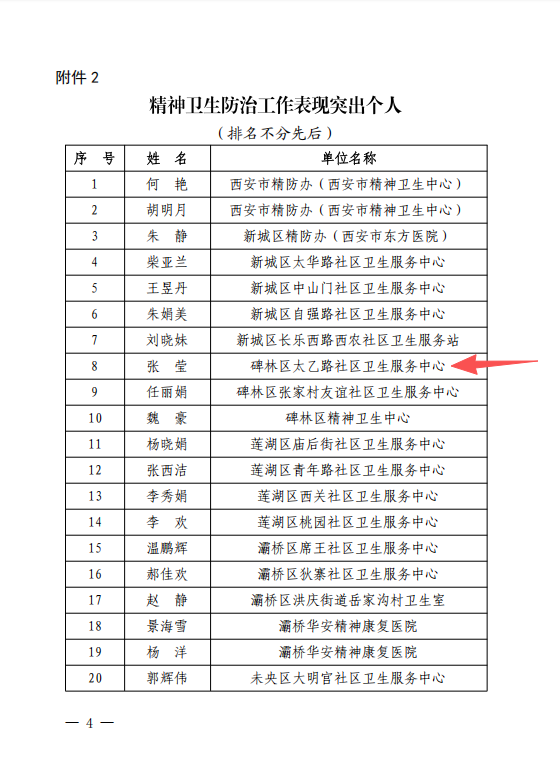 今日,西安市卫生健康委发布《关于表扬精神卫生防治工作表现突出集体和个人的通报》,碑林区太乙路社区卫生服务中心在全市精神卫生防治工作中表现优异,荣获“精神卫生防治工作表现突出集体”,中心张莹同志凭借荣获“精神卫生防治工作表现突出个人”荣誉称号。