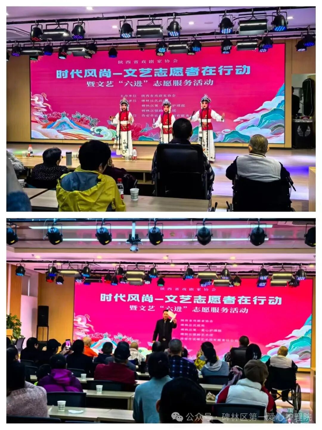 在保障身体健康的同时,护理院格外注重长者的精神需求,以丰富的文化活动为老人的生活添彩。此次演出中,《三滴血》选段等经典秦腔剧目一亮相,便唤起了老人们的时代记忆,不少人跟着轻声哼唱;幽默诙谐的快板表演更是让院区充满了欢乐气息。