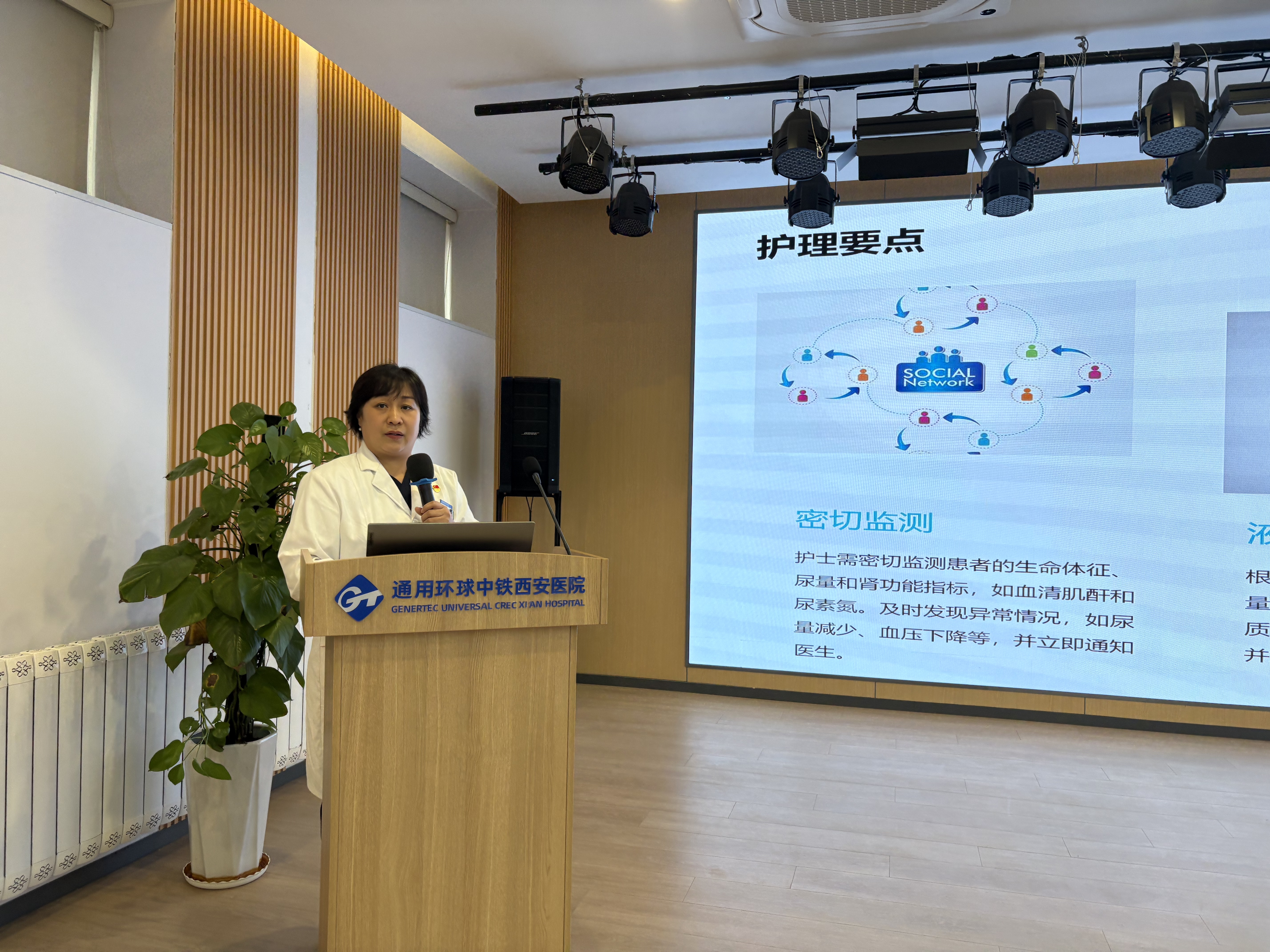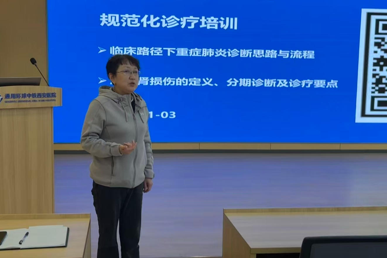 培训紧扣临床需求,围绕核心病种的规范化诊疗展开系统性培训。首场内容深度聚焦内科系统的重症肺炎与急性肾损伤(AKI)两大关键病种。在《临床路径下重症肺炎诊断思路与流程》课程中,呼吸与危重症医学科主任戚刚强系统解析了诊断标准与鉴别要点,并明确要求病历中清晰体现呼吸频率、氧合指数、影像学范围及机械通气需求等核心数据,为病情评估提供坚实依据;在《急性肾损伤的定义、分期诊断及诊疗要点》课程中,血液净化室主任杨奕详细阐释了AKI的快速识别与标准分期,并着重强调准确记录基线肌酐、肌酐峰值、尿量及透析需求是评估病情严重程度与资源消耗的关键。