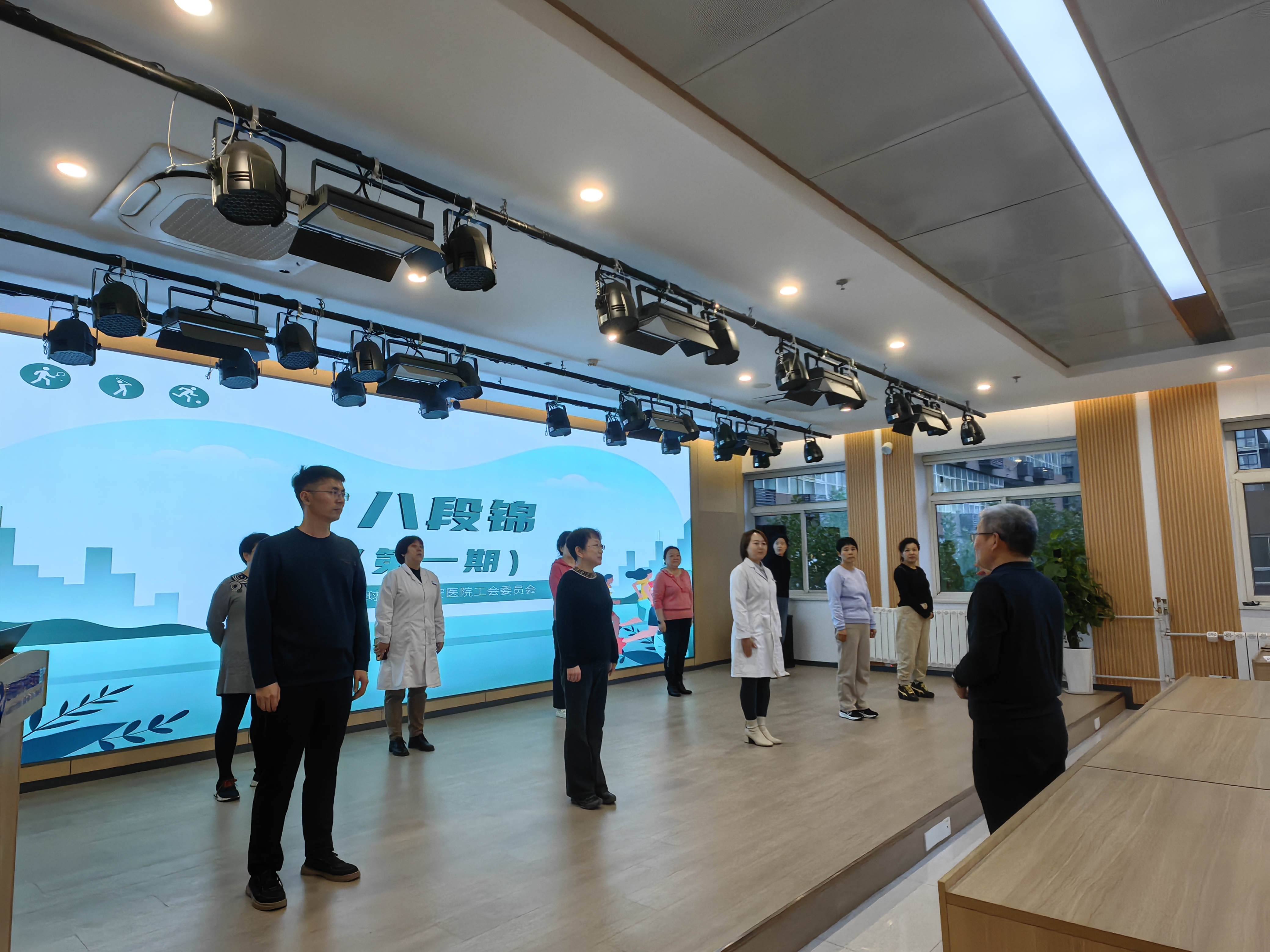 为贯彻落实全民健身国家战略,提升员工身体素质和健康水平,11月3日,由院工会主办的“员工健康双循环计划”正式开班,中医科主任任朝伟、创伤中心主任付刚受邀现场授课指导,通过“静”(八段锦)与“动”(抗阻训练)的双重课程交叉,开启“班后一小时”的养生锻炼新模式,吸引了40余名员工参加。