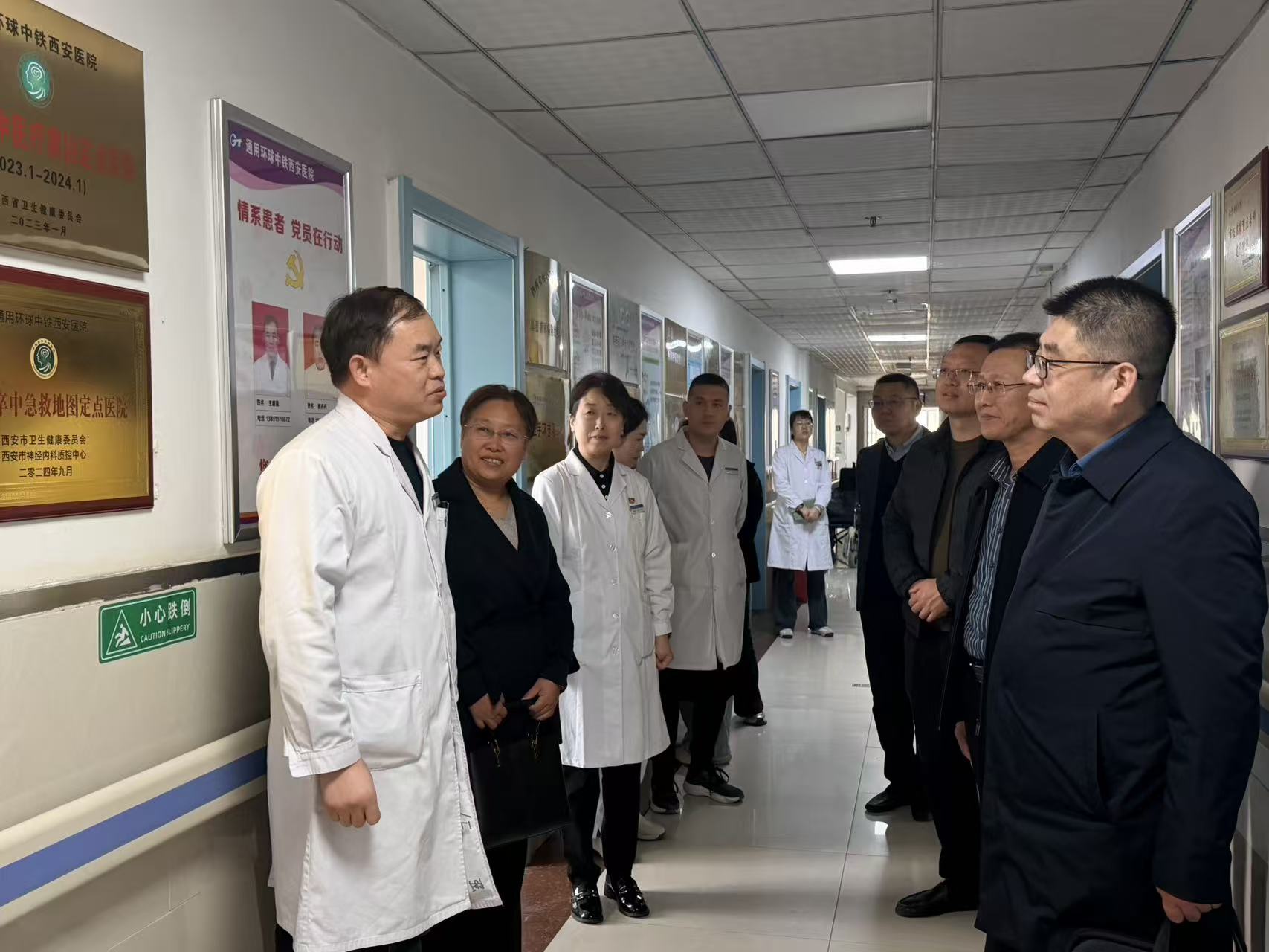 在院领导的陪同下,李晓军书记一行先后走访参观了体检中心、门诊楼、骨科、心血管内科、神经内科及康复医学科,在骨科病区,科主任姬传磊介绍了断肢再植、腓骨移植等技术,双方还进行了现场探讨;在神经内科病区,脑科病院院长王建强介绍了卒中中心建设及急危重症患者救治方面的做法。