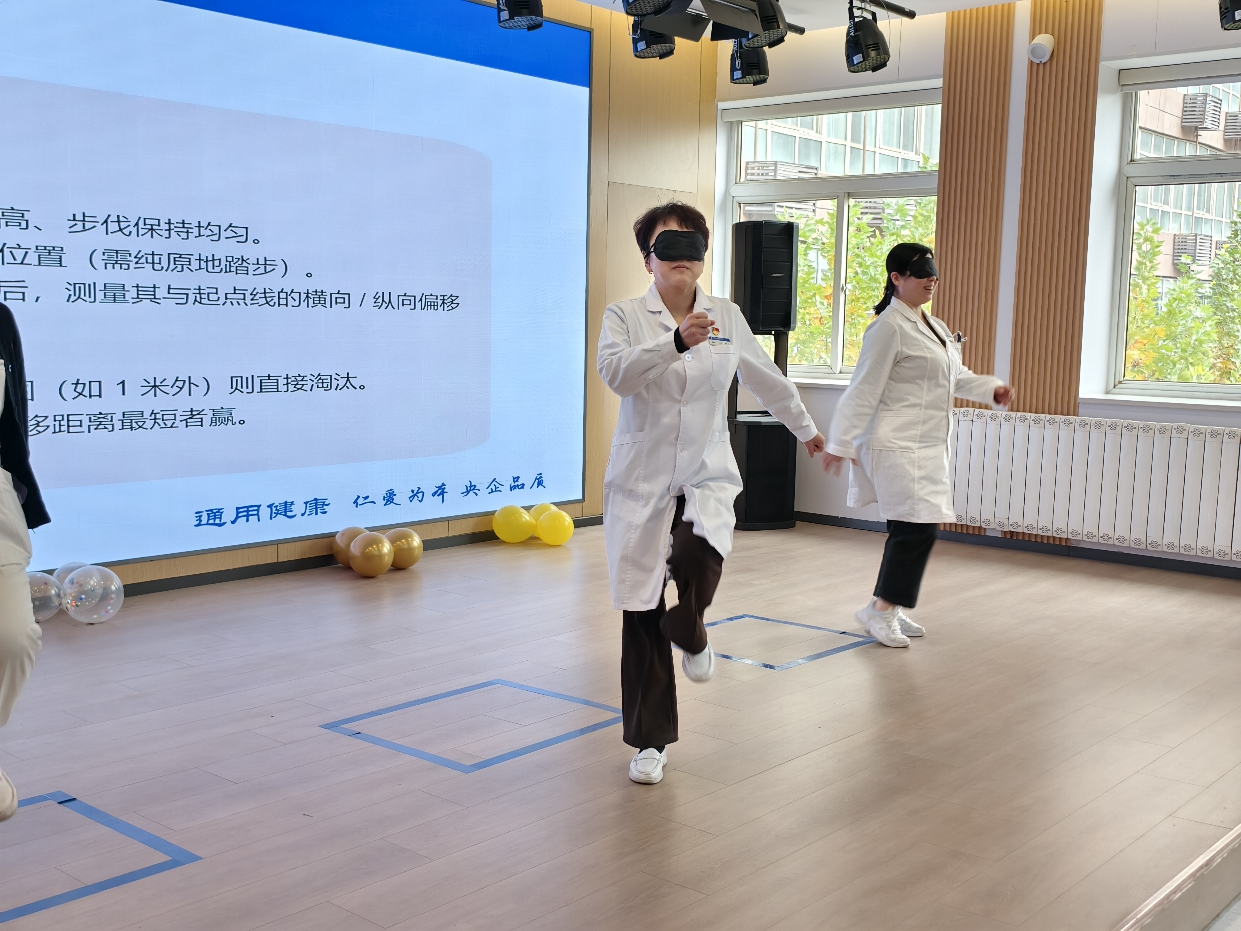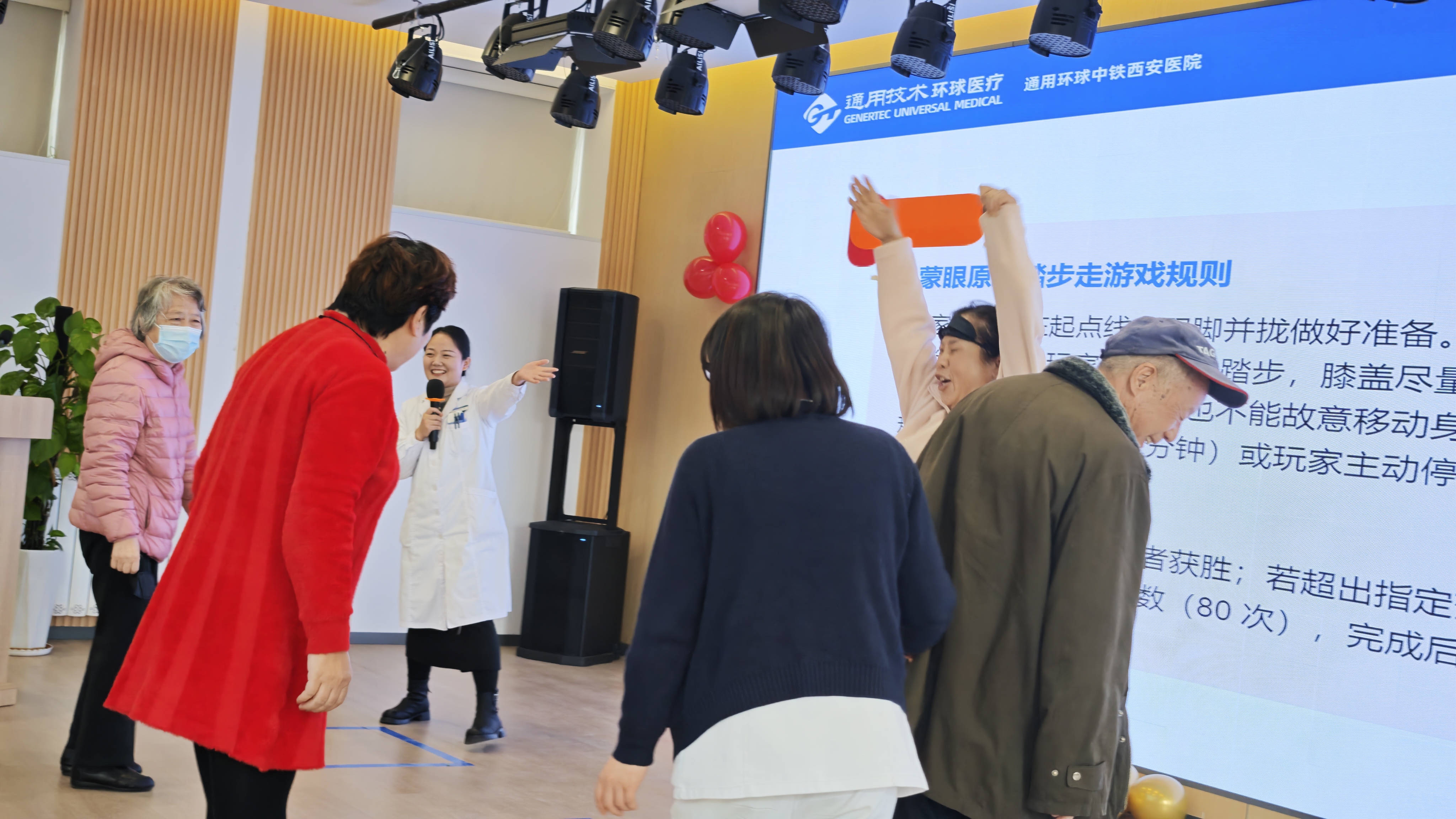 蒙眼原地踏步走等游戏环节,将活动气氛推向了高潮。糖友们积极参与,全神贯注,现场欢声笑语不断。该环节不仅让糖友们在轻松的氛围中活动了身体,更让大家意识到规律运动对控糖的重要性。