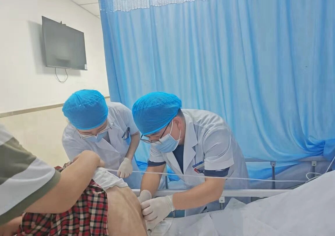 治疗过程中,老人需接受胸腔闭式引流术,以解决液气胸问题,该操作涉及呼吸系统专业技能。刘亚飞及时报告,心血管病院副院长刘云凤团队综合研判后,请呼吸与危重症医学科医生协作。