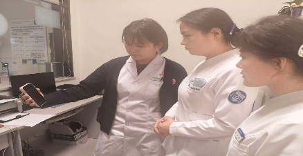 手机屏幕一端,是中心护士长张芬紧锁的眉头,以及我院伤口造口专科学组组长、消化病院护士长庞丽专注的目光;另一端,老人家属仔细展示造口。“李奶奶的造口有轻微回缩,肠黏膜颜色红润,周围皮肤存在失禁性皮炎,最大一处直径2.5cm,肠表面溃疡面直径约1.5cm,深度约0.3cm,伴有少量渗出液……”张芬阐述造口情况,语气中露出担忧。