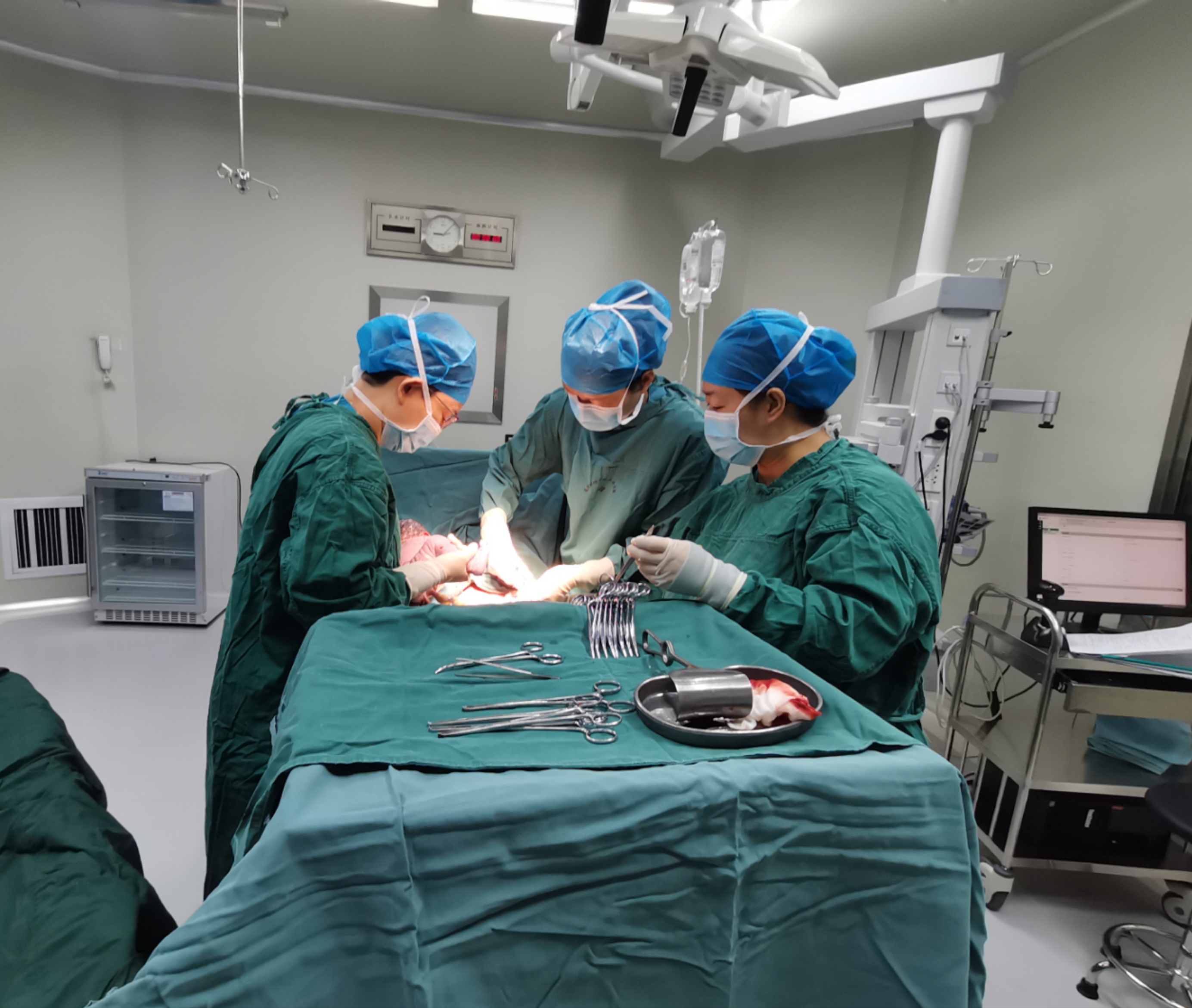 剖宫产手术在椎管内麻醉下进行,产妇腰部以下无痛感,意识清醒,麻醉医生、手术医师,助产士等全程协作,确保手术顺利进行。在我院专业团队的配合下,手术顺利结束,母婴平安。