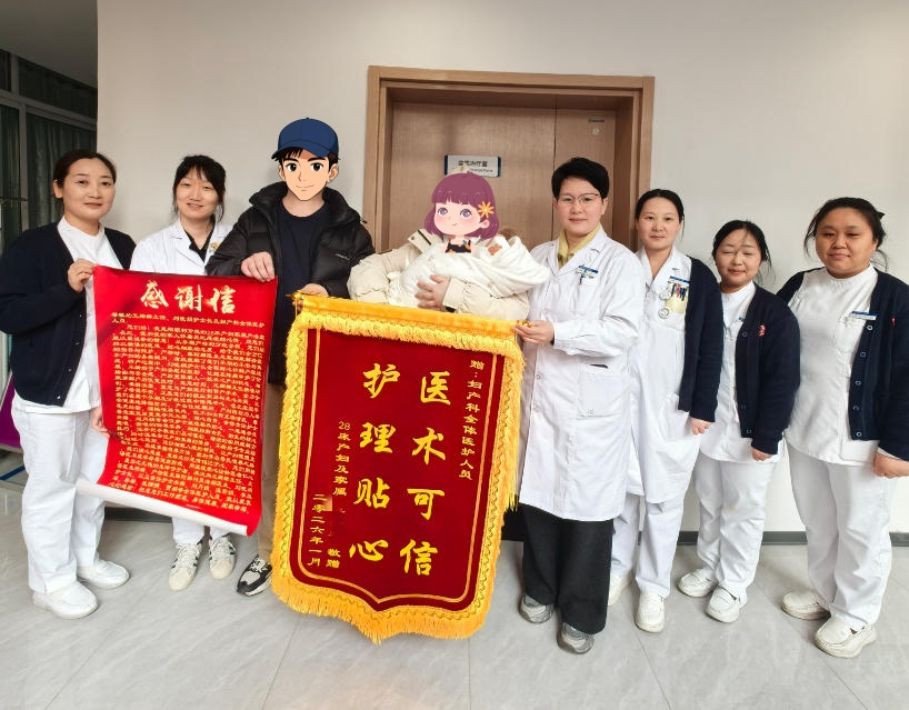“王娜娜主任准确判断,及时行剖宫产手术终止妊娠,保证了我们母子健康。分娩后初为人母的我,陷入喂养焦虑,妇产科团队耐心、细致的指导,有效缓解了我的焦虑……”陈女士动情地说,是妇产科团队陪伴自己生产及产后最难熬的时刻,特别是每次查房,都会细致轻柔的检查伤口情况,嘘寒问暖,对待宝宝更是无微不至,在这里住院,感觉得到了充分照顾和尊重。出院后,陈女士和家属为王娜娜主任团队送来锦旗和感谢信,对她们的专业技术和温馨服务表达谢意。