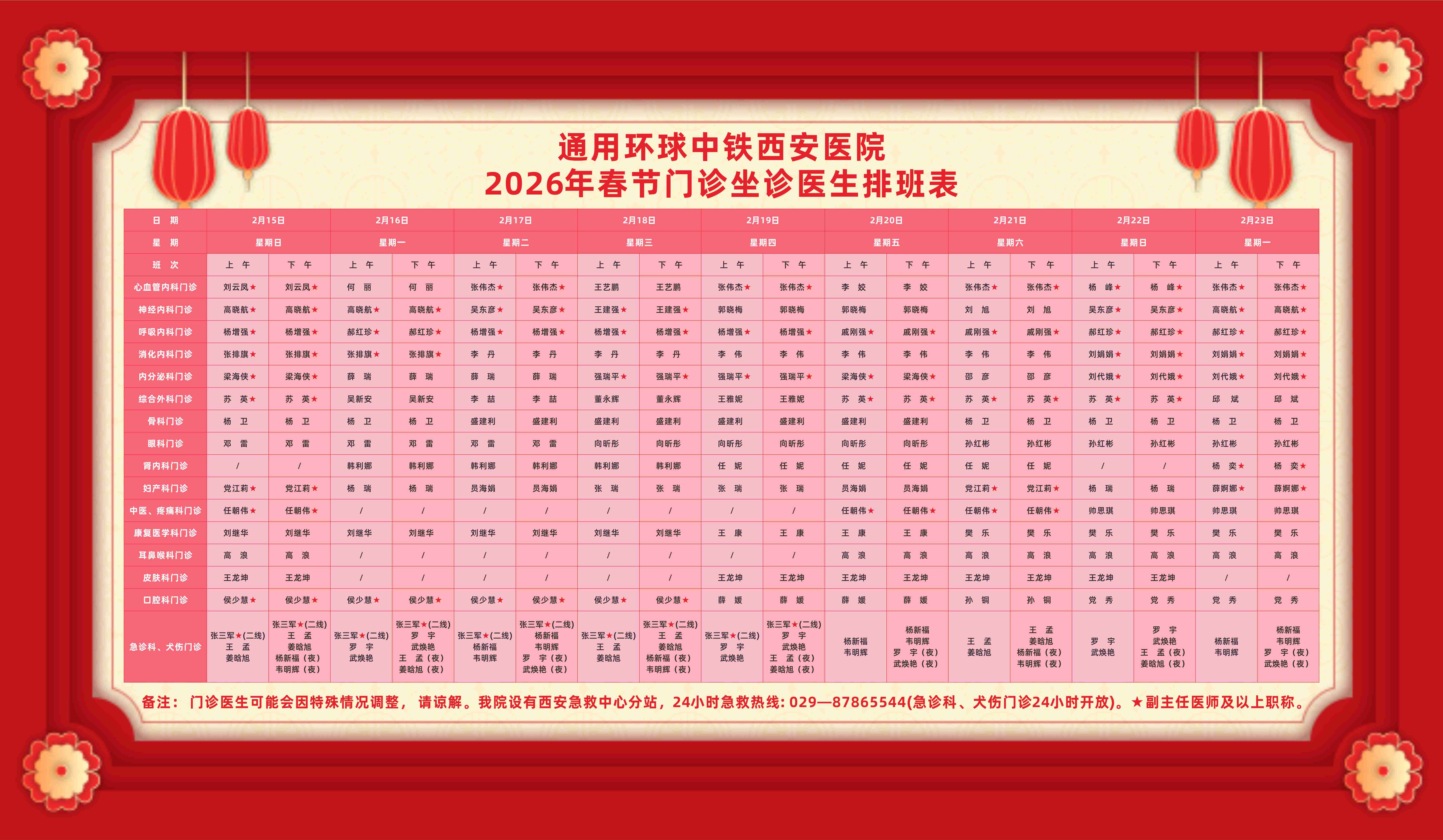 根据我院无节假日门诊安排,2026年春节期间门诊正常上班,具体工作安排如下:
