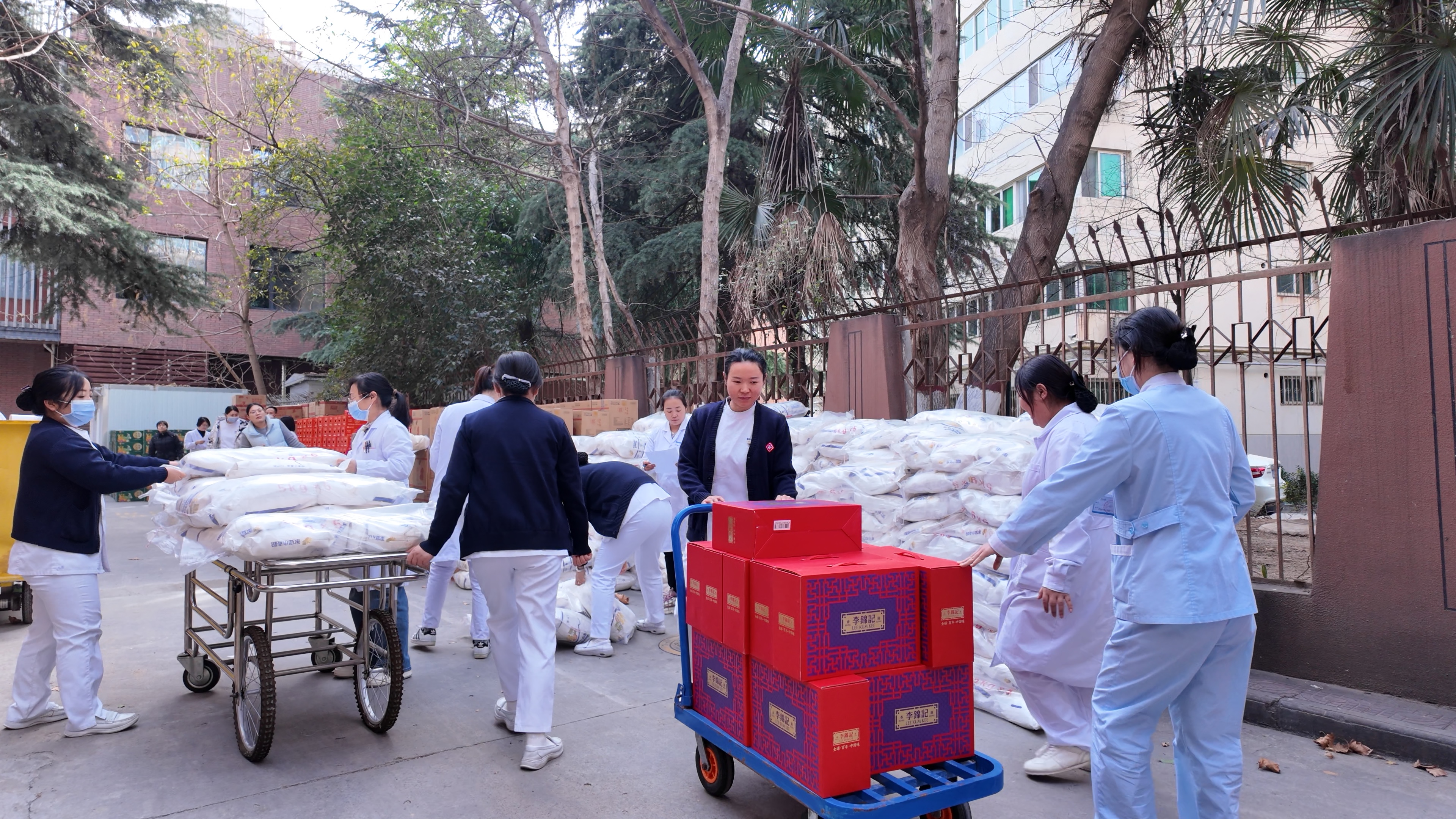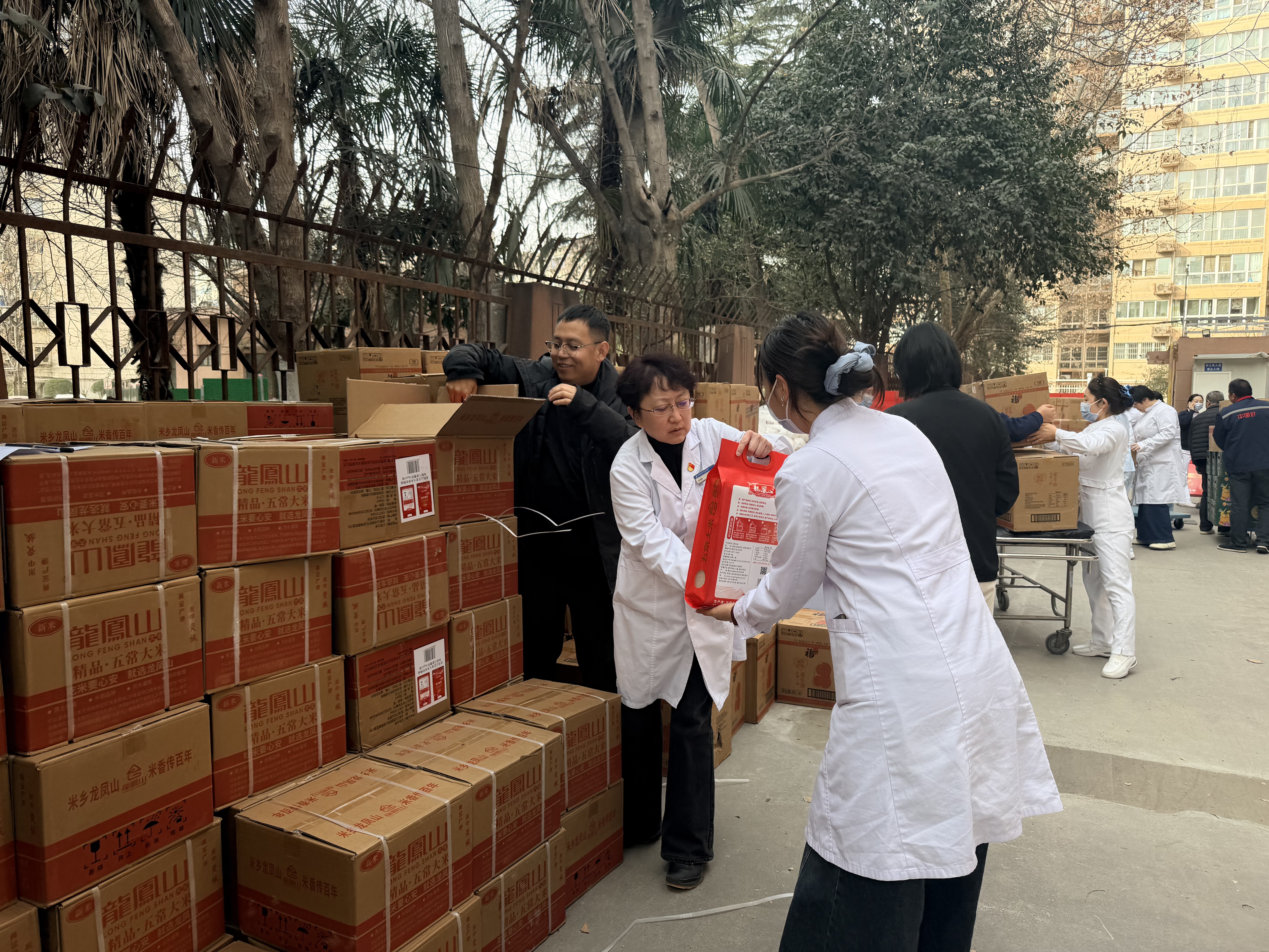 慰问活动现场,气氛热烈,秩序井然。在工会主席、副院长栾育欣的带领下,工作人员将一份份满载心意的米面油、鸡蛋、水果、净菜、玉米等慰问品有序发放到医护人员手中。沉甸甸的礼品,不仅温暖着每个人的心,更饱含着院工会对大家一年以来坚守“医”线、情系患者辛勤付出的深深敬意。这份温暖,不仅是物质上的关怀,更是精神上的慰藉与鼓舞,充分体现了关爱员工、以人为本的理念。