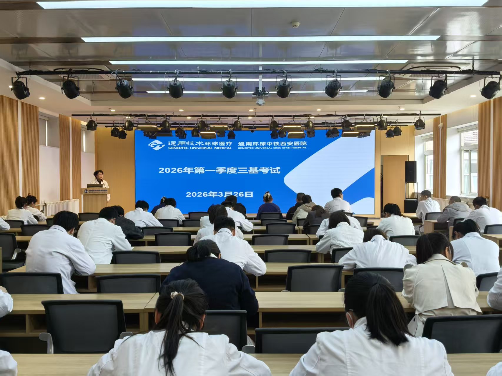 此次考试由医务科组织,旨在全面检验临床、医技医师对专业基础理论内容的掌握情况,内容紧密结合临床实际,涵盖内科学、外科学、诊断学等,以单选、多选及案例分析等题型,既注重考查基础理论的扎实程度,又突出临床思维的灵活性。副院长栾育欣巡考监考,着重强调“三基”考核是保障医疗质量与患者安全的重要抓手,务必人人达标、项项过关。