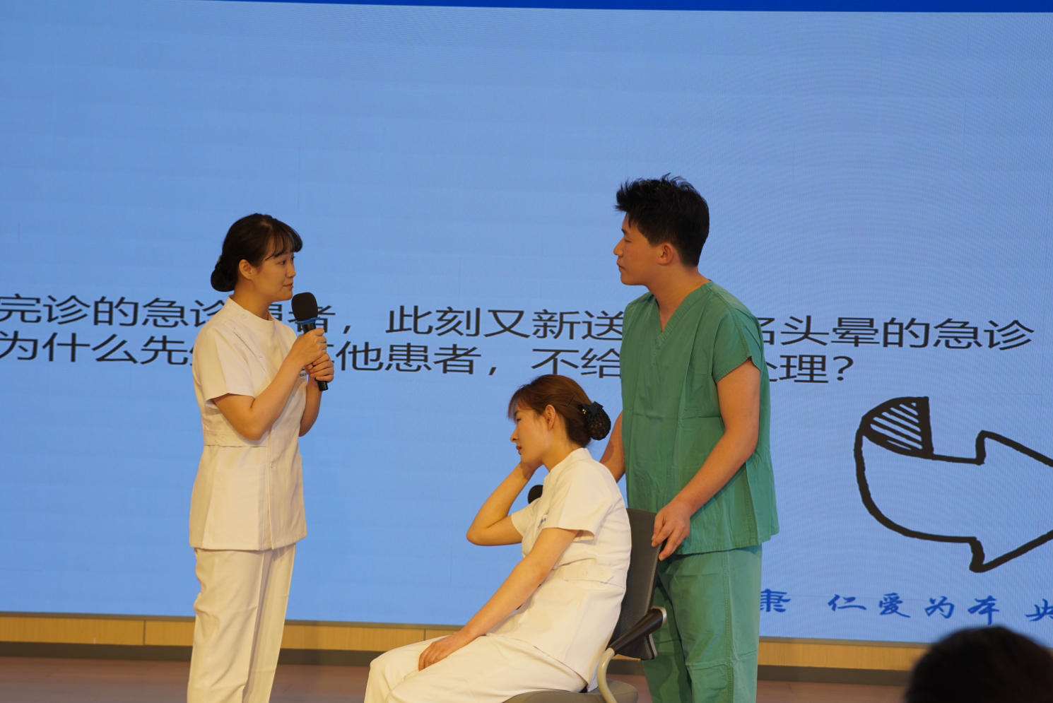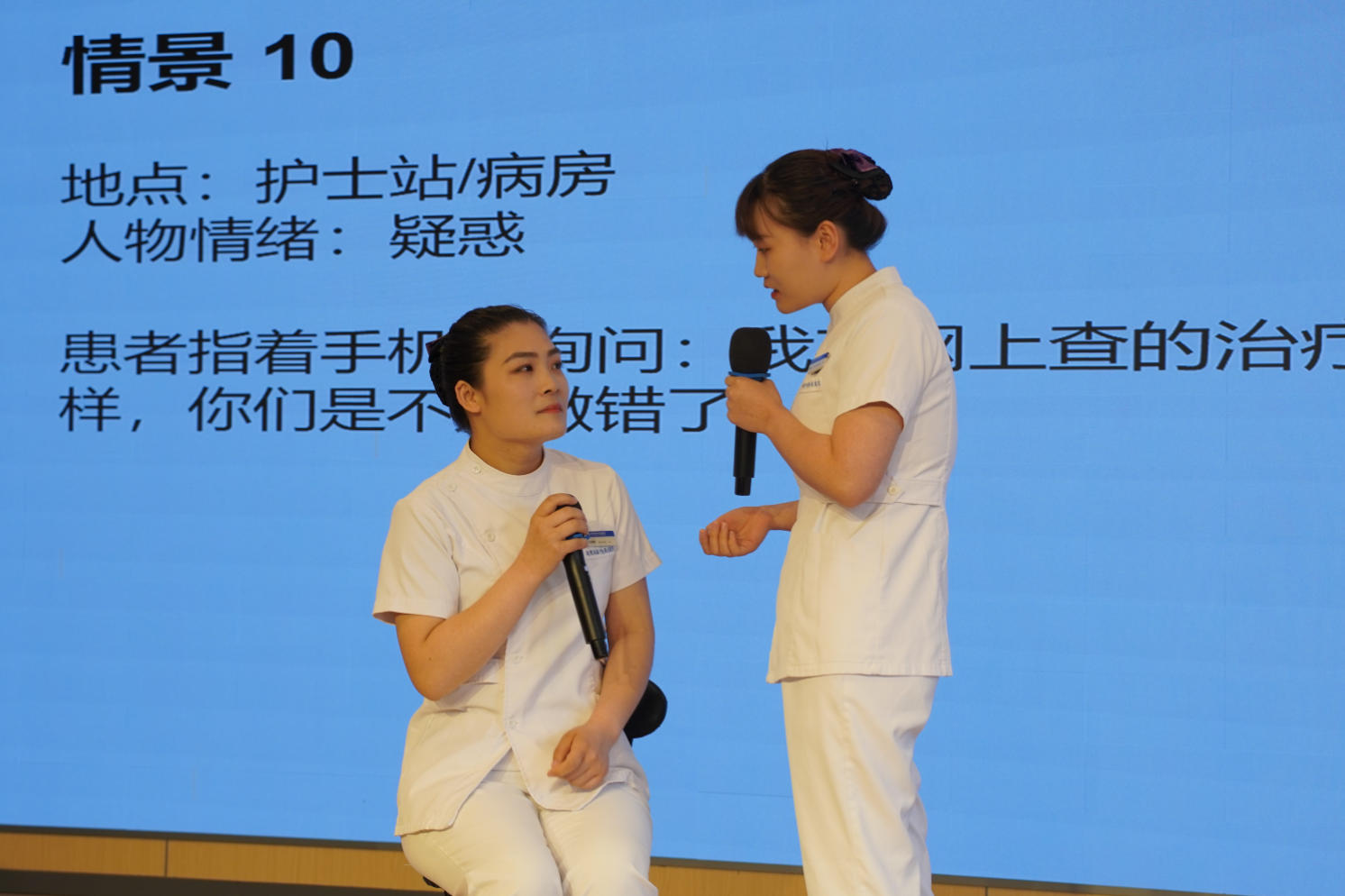 职业礼仪展示结束后,各队选派代表现场抽取护患沟通情景题,围绕入院接待、输液护理、急诊处置、患者疑问解答等10类临床高频场景进行即兴演绎。参赛护士沉着应对、真诚沟通,用耐心化解焦虑、用专业解答疑惑、用温情拉近护患距离,将理论知识与实战技巧有机结合,生动呈现了“仁爱关怀”的服务理念。