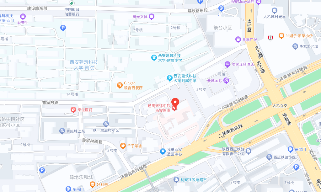 通用环球中铁西安医院 : 陕西省 西安市 南二环东段319号