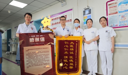 近日,一名患者家属来到我院,将一面写有“大医精诚 医德双馨 仁心仁术 情暖人心”16字的锦旗和一封感谢信送到心血管内科一病区,这份暖心的回馈,不仅是对医护团队精湛医术的认可与信赖,更是...